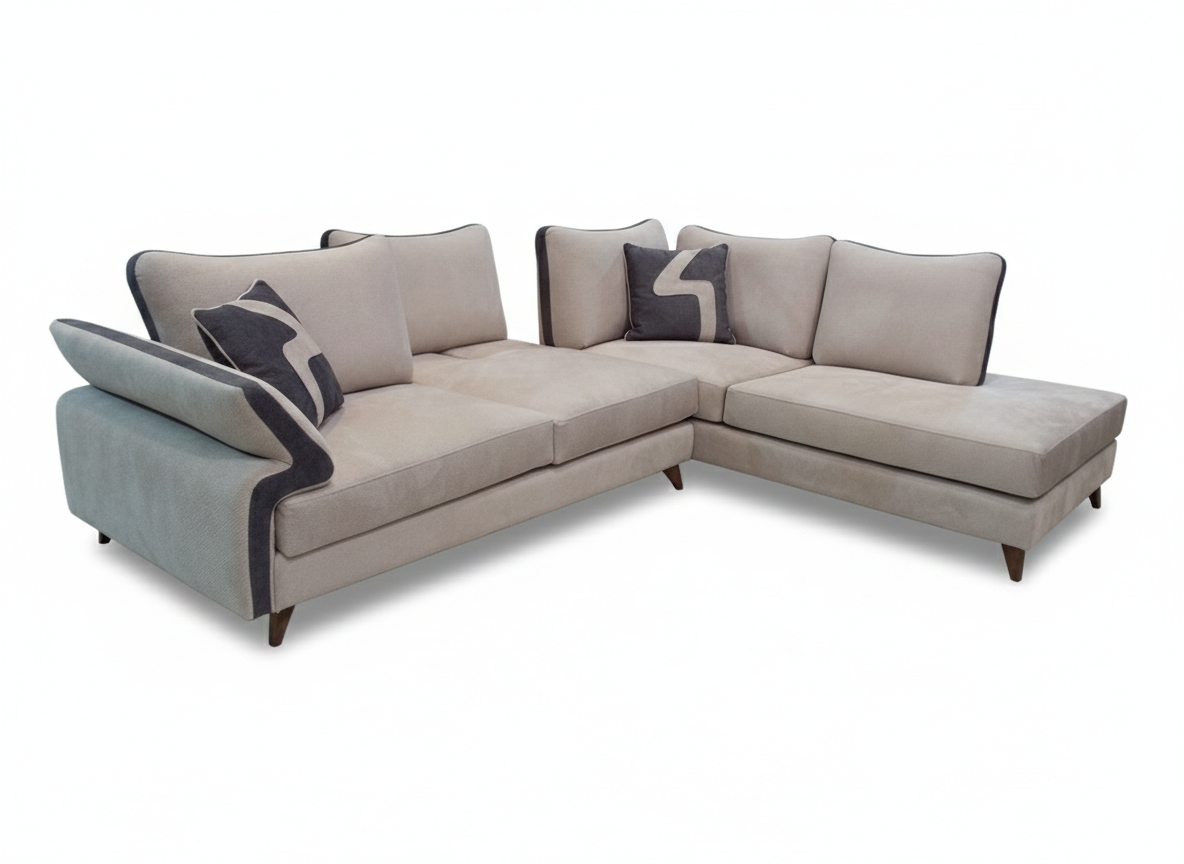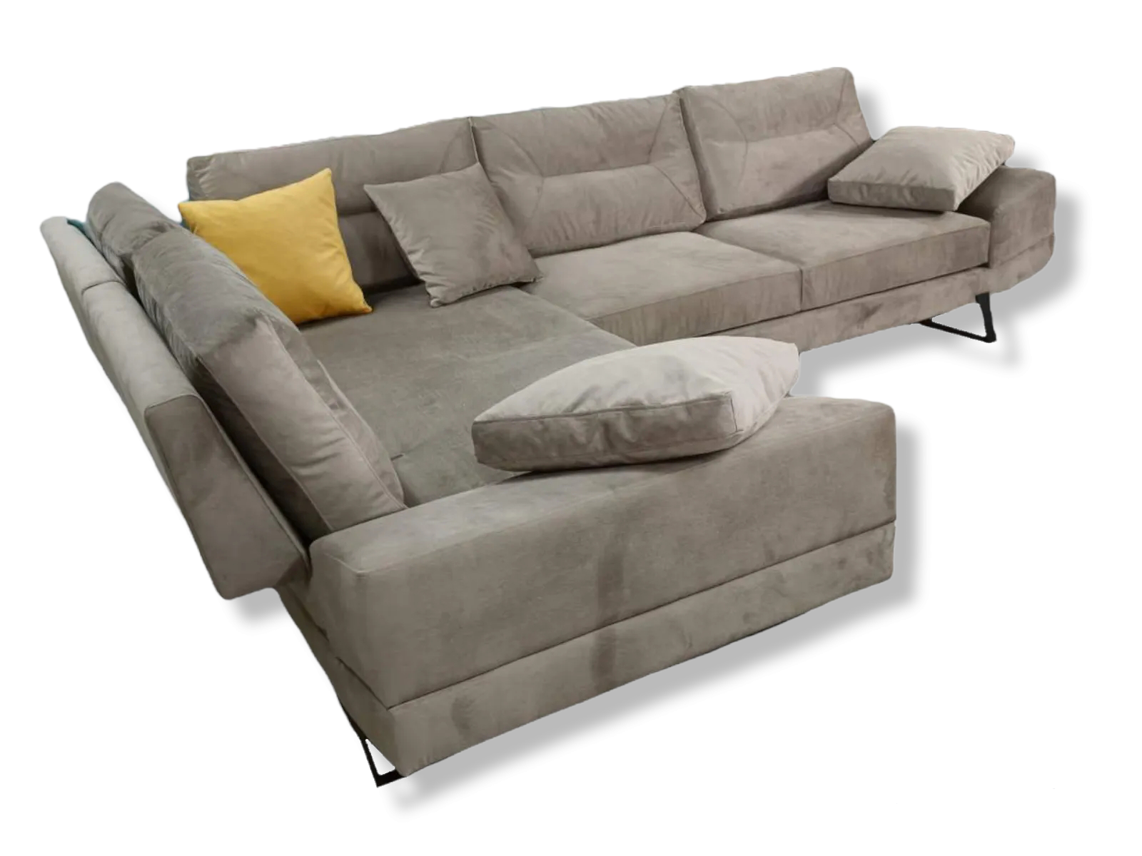 Τα μασίφ μεταλλικά πόδια προσθέτουν σταθερότητα και μοντέρνο ύφος, ενώ τα ιδιαίτερα μαξιλάρια στις άκρες δημιουργούν μια παιχνιδιάρικη ατμόσφαιρα. Απολαύστε την εξατομικευμένη άνεση με αυτόν τον καναπέ γωνία που συνδυάζει την πρακτικότητα με το στυλ.*δυνατότητα επιλογής υφάσματος