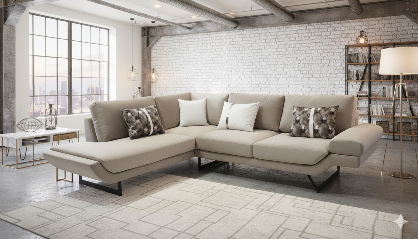 Μοντέρνος γωνιακός καναπές υψηλής αισθητικής, ιδανικός για να αναβαθμίσει κάθε σύγχρονο σαλόνι. Με άνετα και βαθιά καθίσματα, ανθεκτική κατασκευή και κομψό industrial σχεδιασμό, προσφέρει απόλυτη άνεση και στυλ στην καθημερινότητά σας. Η ιδανική επιλογή για όσους θέλουν ποιότητα, άνεση και design σε ένα έπιπλο.Διάσταση αριστερά 2,90μ. και δεξιά 2,40μ.ΣΑΛΟΝΙΑ-ΕΠΙΠΛΑ ΘΕΣΣΑΛΟΝΙΚΗ Proskinitopoulos ® … από το 1989