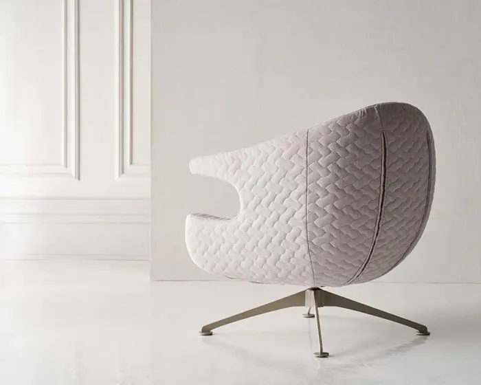 Αυτή η πολυθρόνα έχει περιστροφική βάση. Το εσωτερικό μέρος αποτελείται από μασίφ σίδηρο και αφρό πολυουρεθάνης. Αποσπώμενο / πλενόμενο κάλυμμα μαξιλαριού. Η μεταλλική περιστρεφόμενη βάση της, μπορεί να βαφτεί σε 16 διαφορετικά χρώματα ηλεκτροστατικής βαφής.